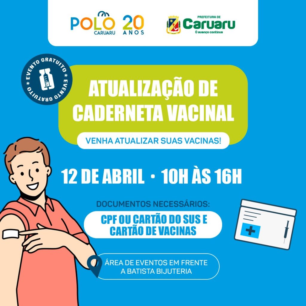 Em parceria com o Polo Caruaru, a Secretaria de Saúde Municipal estará realizando uma campanha de atualização da caderneta de vacina e vacinação contra a influenza no dia 12 de abril. A iniciativa irá acontecer no Polo Caruaru e tem como objetivo ofertar as vacinas contra a influenza (para grupos prioritários), difteria, tétano e hepatite […]
