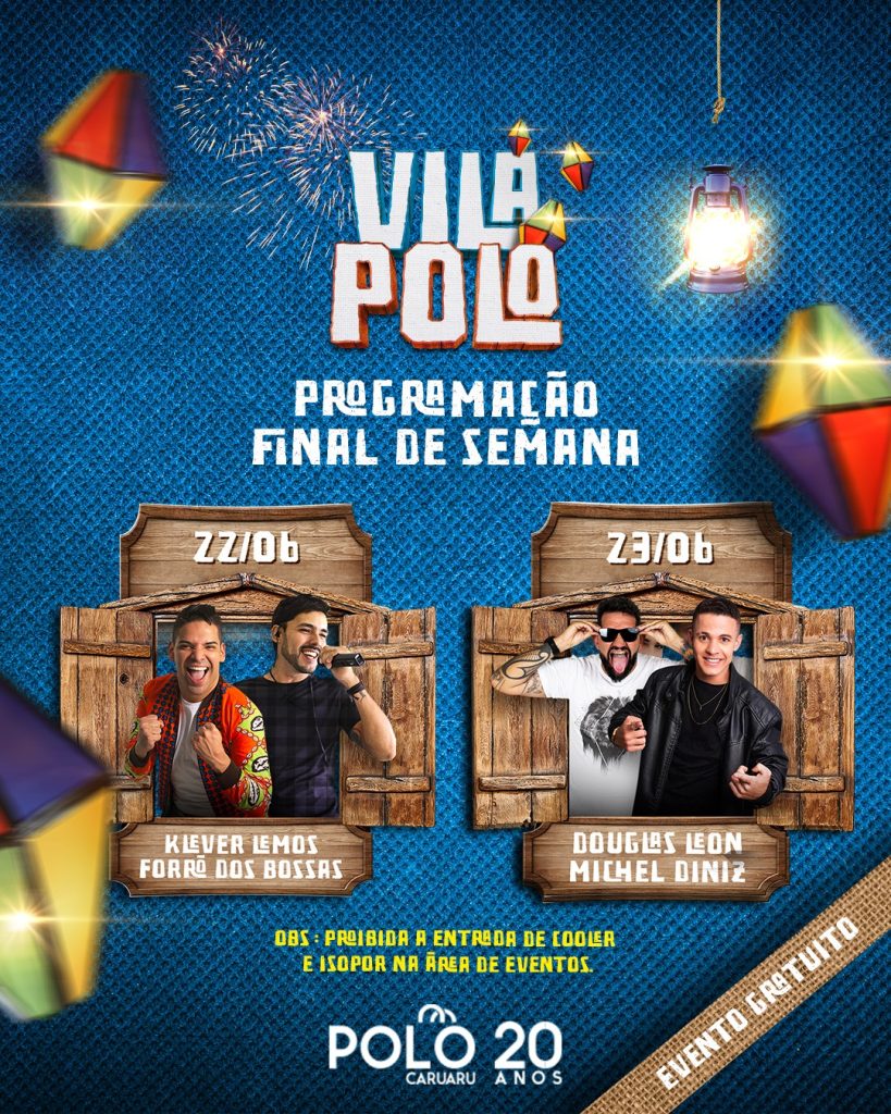 O fim de semana do feriado de São João terá uma programação mega animada no Vila Polo. A festa vai contar com Klever Lemos, Forró das Bossas, Michel Diniz, Douglas Leon e Elias Guinho. Na segunda-feira (24), feriado de São João, o Polo estará funcionando de 9h às 18h. Além de muita música, o Vila […]