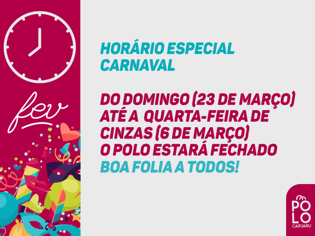 A partir de amanhã, sábado (21.03), como determinou o Governo de Pernambuco, o Polo Caruaru suspenderá as atividades. Não é o que gostaríamos de anunciar, mas, neste momento, precisamos acatar as medidas das autoridades e colaborar para que possamos preservar a saúde de um número máximo de pessoas, diante da pandemia de coronavírus. Então, pra […]