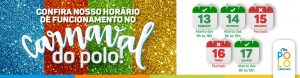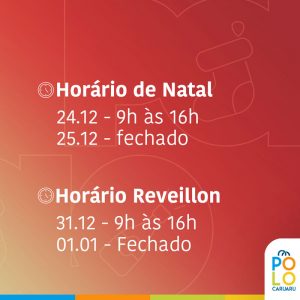 Por conta das festas de fim de ano, o Polo Caruaru funciona em horário reduzido no dia 31 de dezembro, das 9h às 16h. No